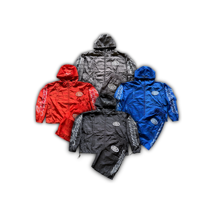 Step into the shadows with the Midnight Draft set — where sleek meets savage. Designed for movement, impact, and attitude, this all-black windbreaker set makes a bold statement with signature script details that demand a double take. Whether you’re on the streets or in the spotlight, this piece keeps you low-key yet legendary.