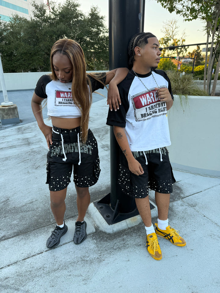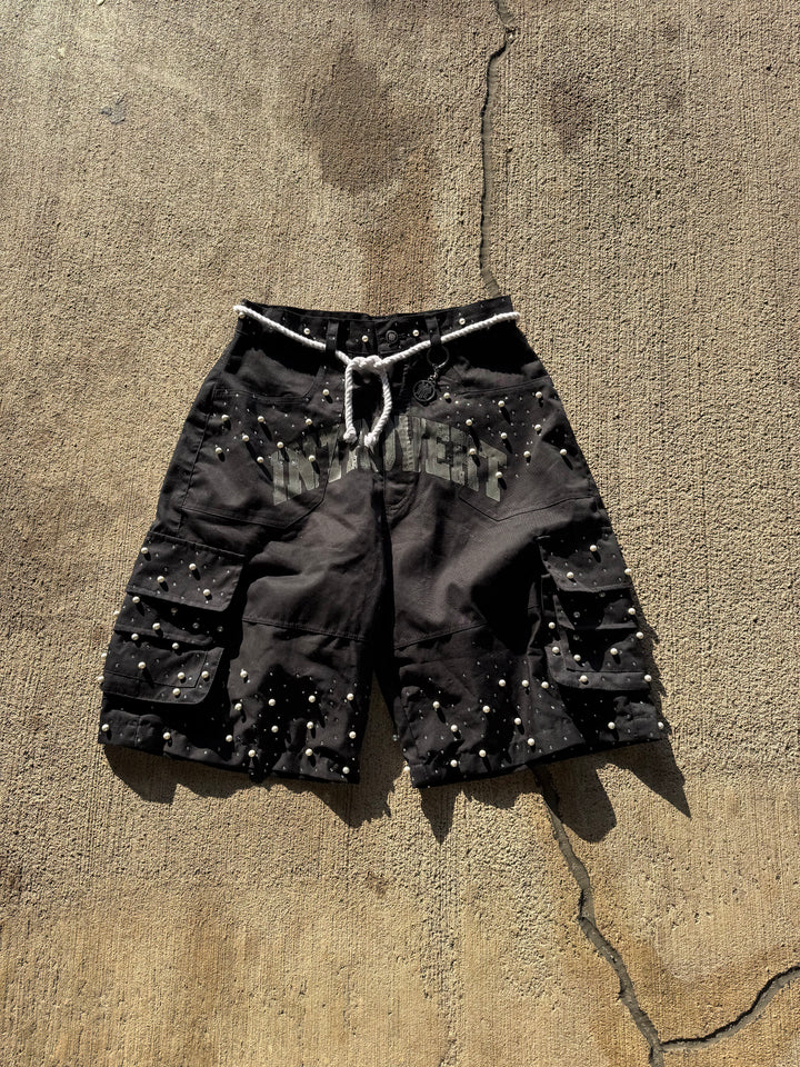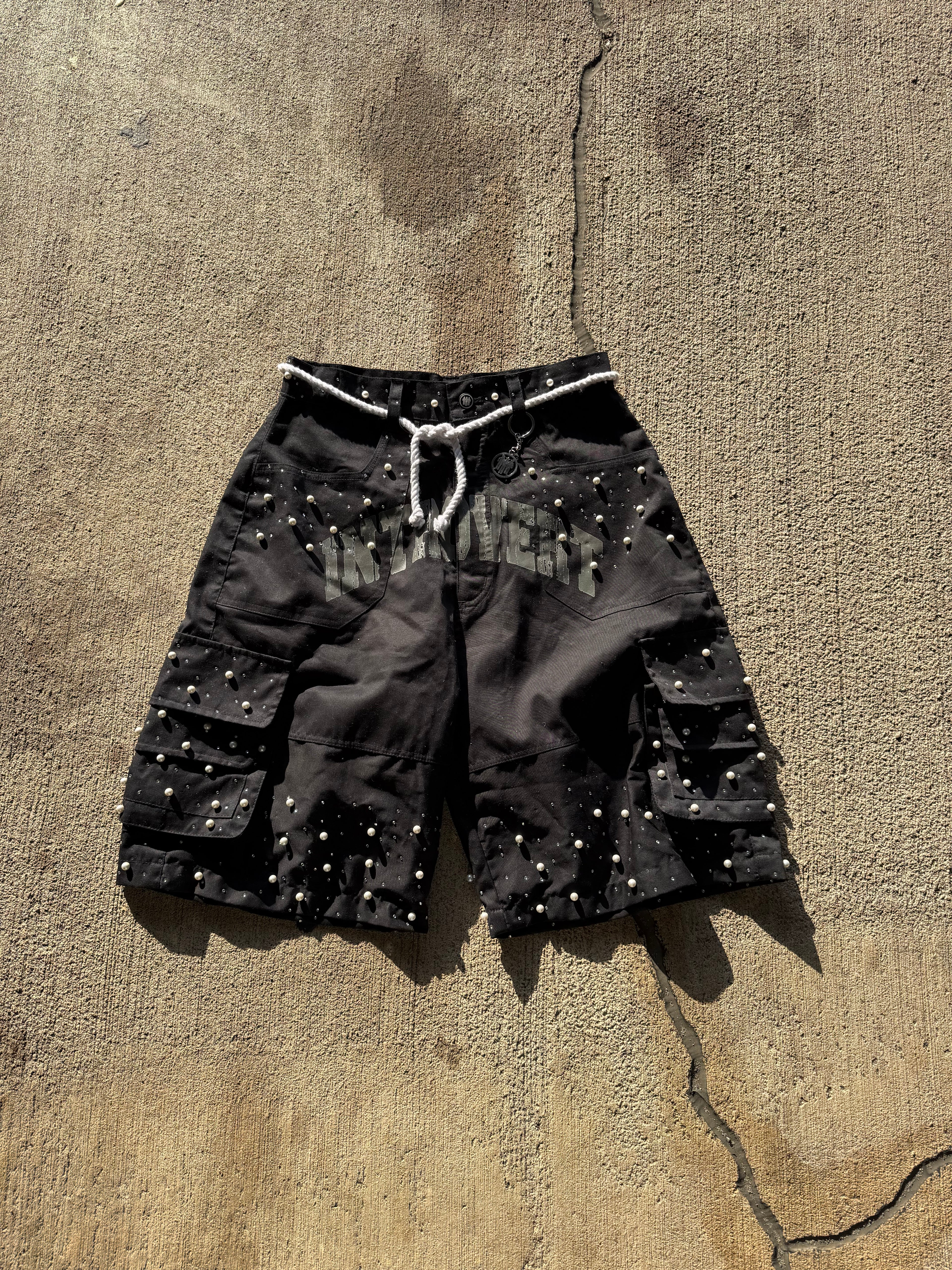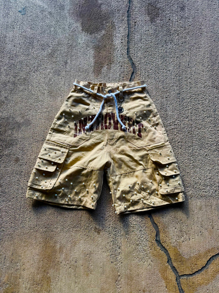 Crafted for those who demand detail, the Stargazer Cargo Shorts bring celestial energy to the streets. Each pair is hand-finished with high-quality pearl accents and shimmering VVS diamond-inspired embellishments — a bold fusion of rugged utility and luxury design.