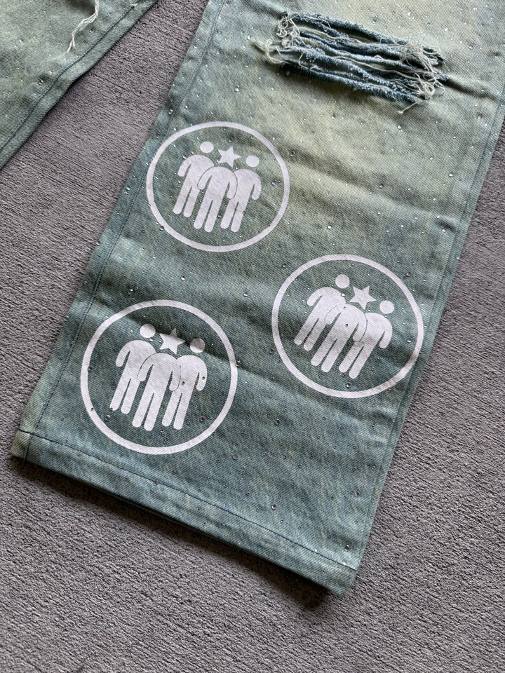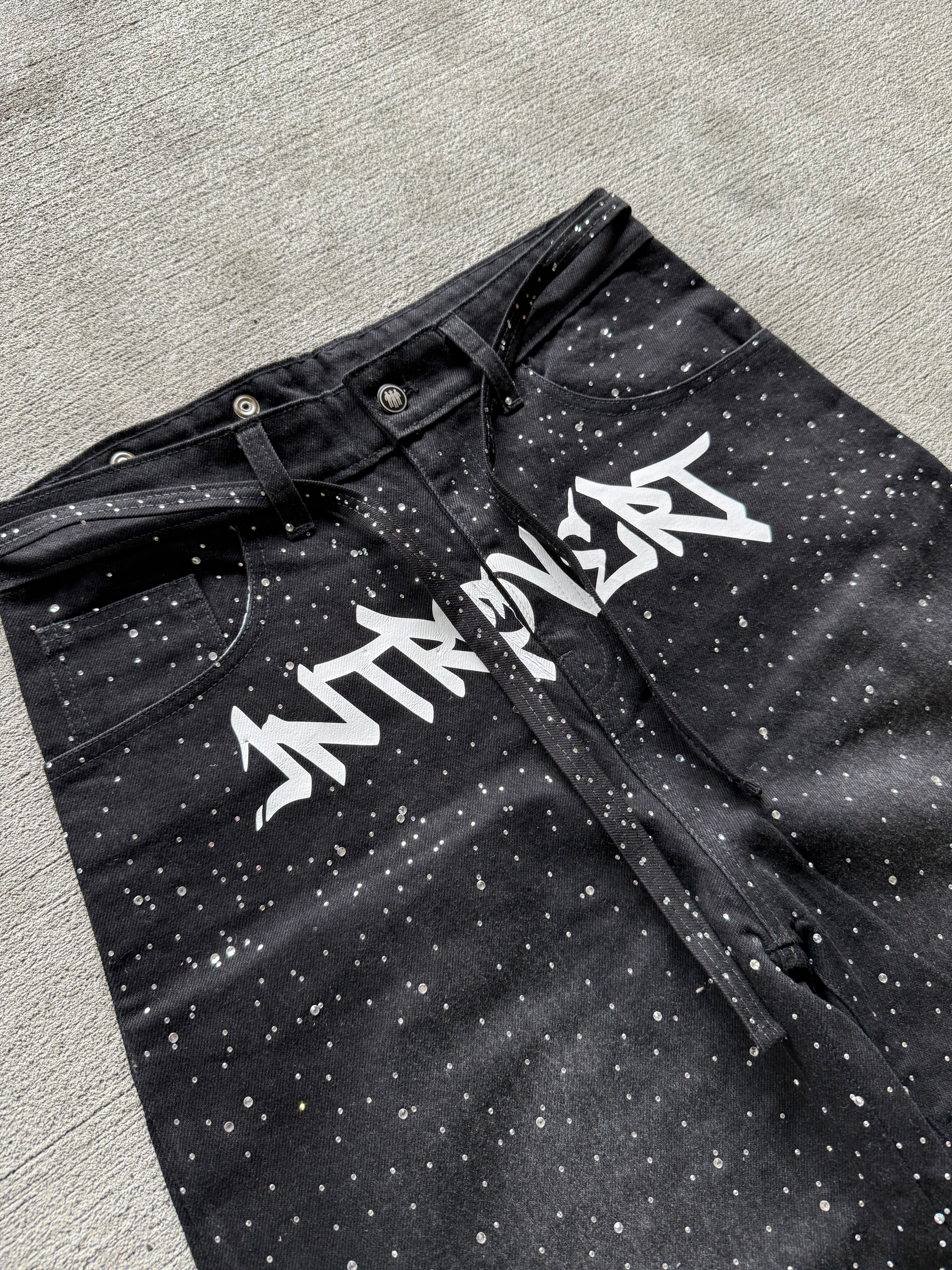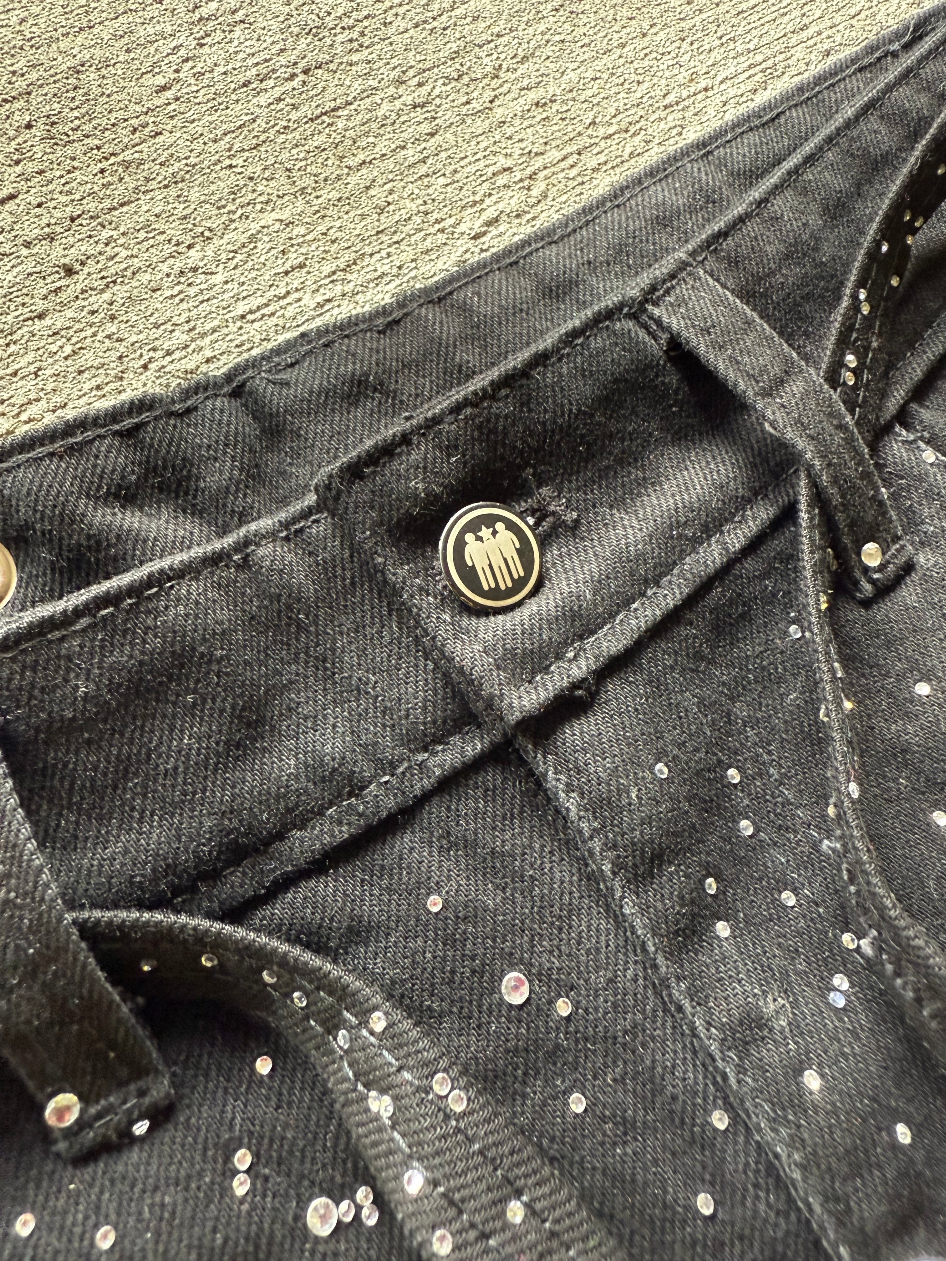 The Shooting Star Denim Jeans are more than just denim — they’re wearable statements. Each pair is hand-embellished with over 10,000 VVS diamond-like crystals, scattered like stars across the fabric, catching light with every step. Whether you choose the cosmic green “Nebula Fade” or the galactic black “Midnight Orbit”, you’re stepping into a galaxy built to shine.