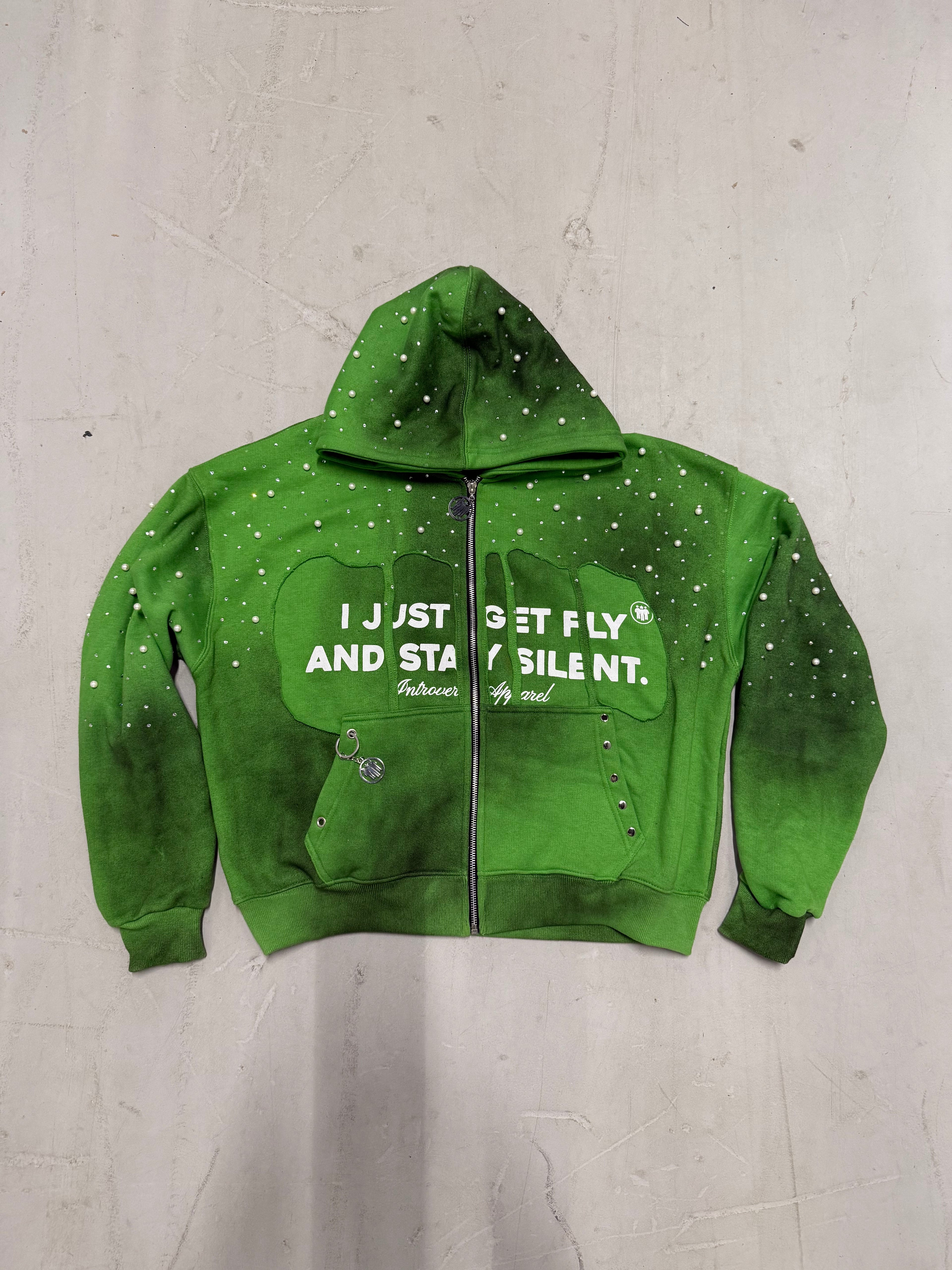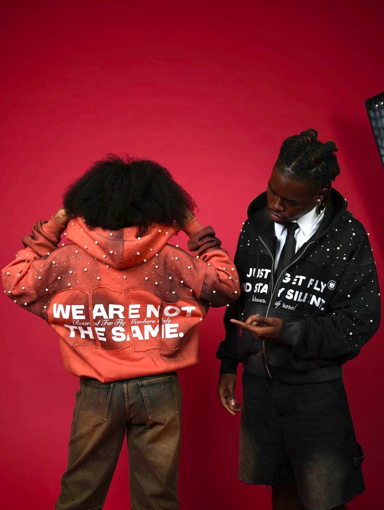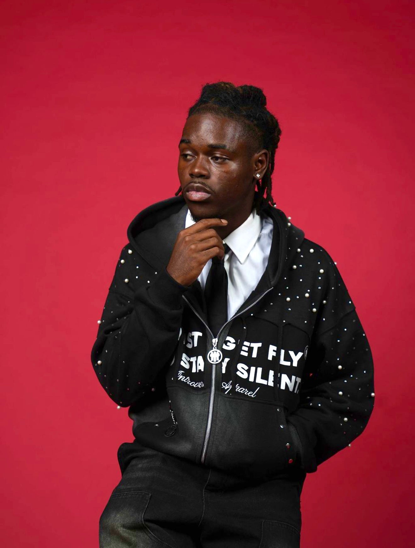 Each Silent Shiner Zip Up is handcrafted from a premium heavyweight cotton blend that’s soft, structured, and built to last. It’s detailed with VVS diamond rhinestones and pearl accents, making every piece shimmer with quiet power.